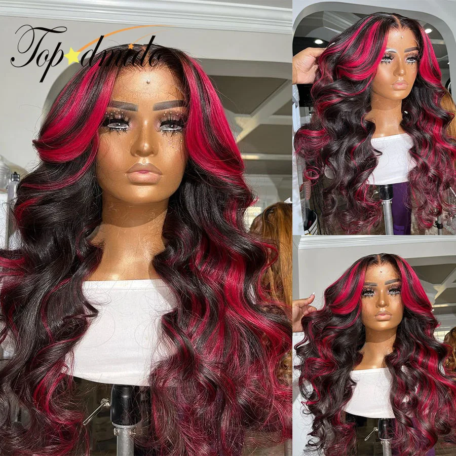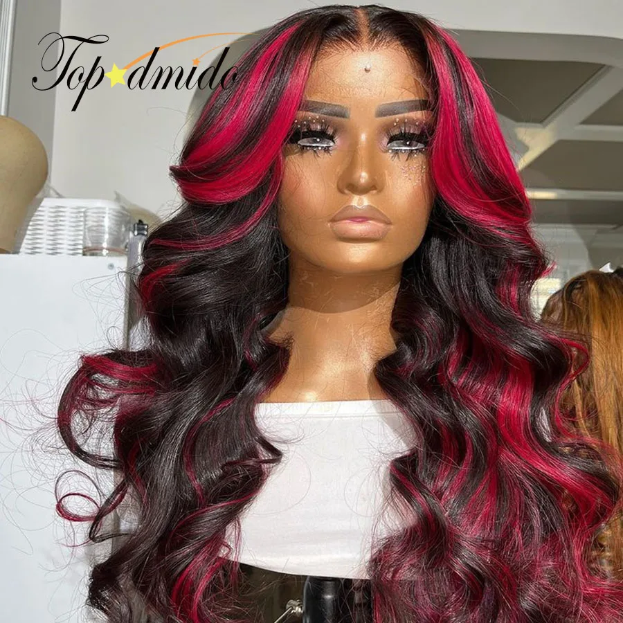 Topodmido хайлайтер розовый красный цвет прозрачный кружевной парик с детскими волосами 13x4 бразильские человеческие волосы парик тела Волнистые парики на сетке