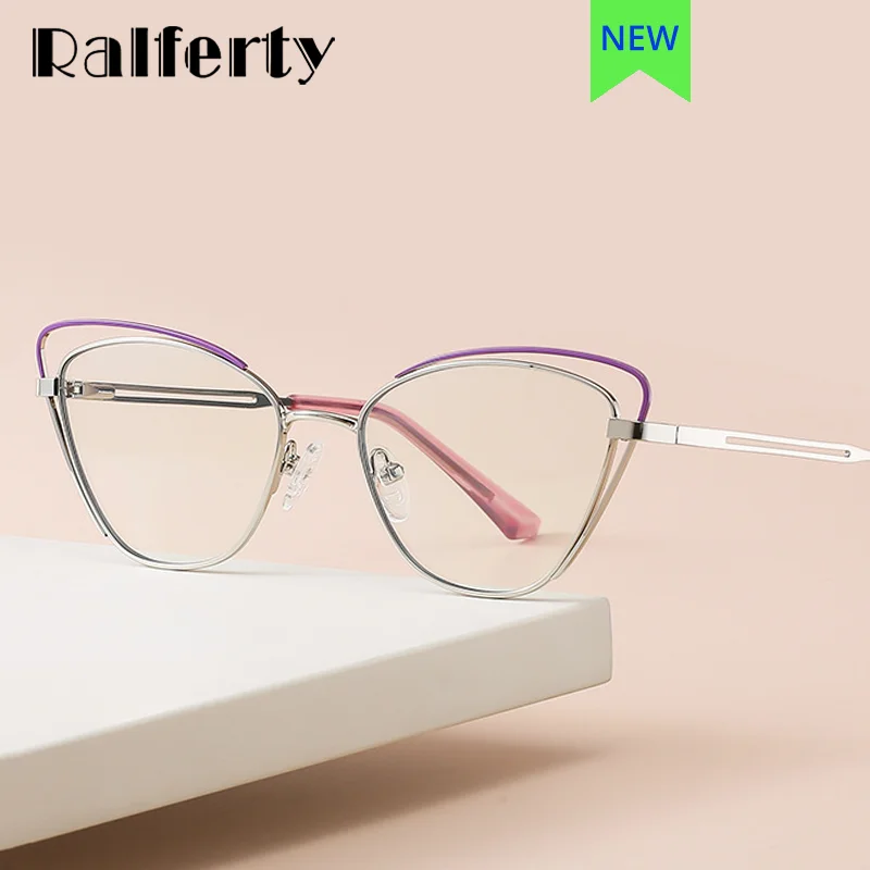 Ralferty 2022 женские очки с оправой Роскошные кошачий глаз металлические очки анти синие компьютерные очки оправа без диоптрий Oculos