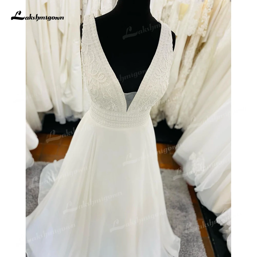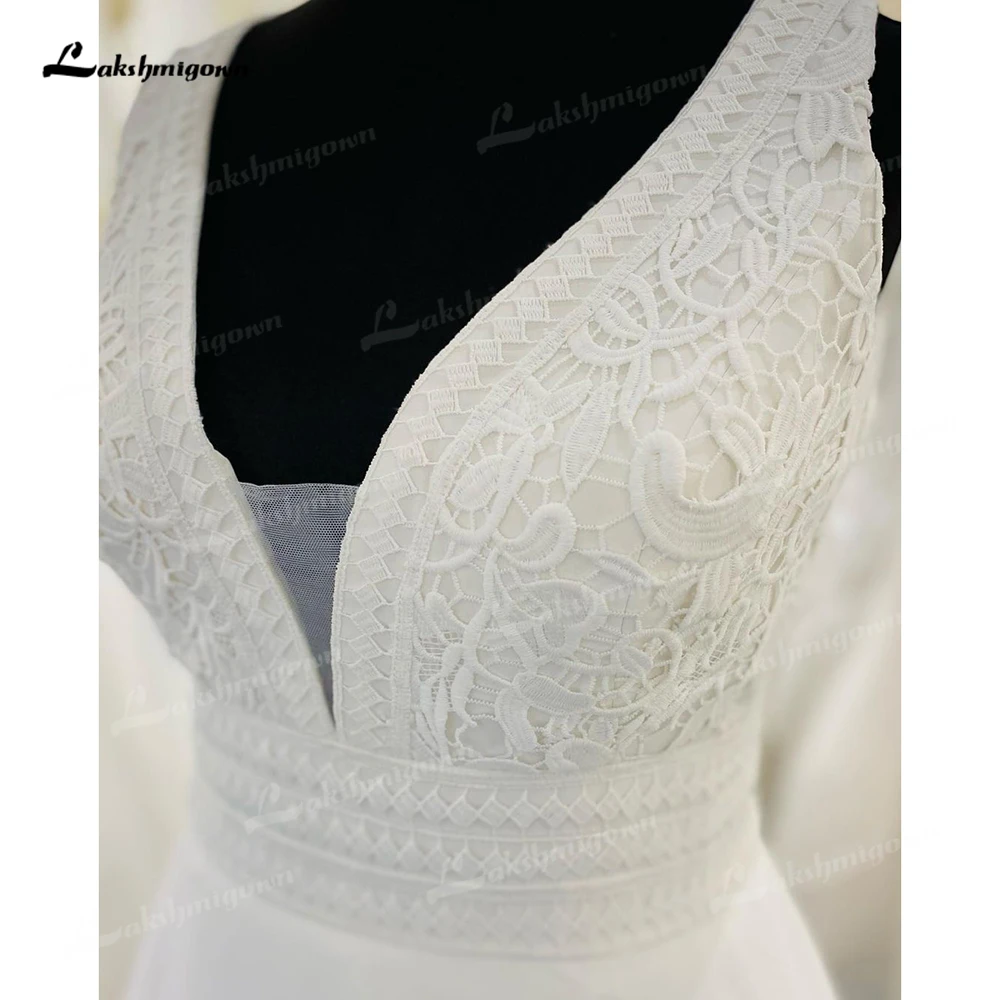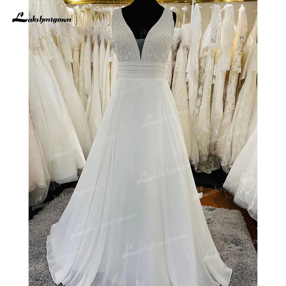 Пляжное кружевное свадебное платье А-силуэта с V-образным вырезом, женское свадебное платье в стиле бохо, ярко-белогоцвета слоновой кости