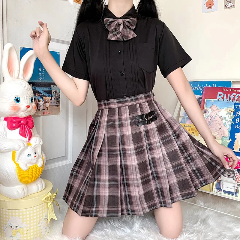 Сексуальная плиссированная юбка в клетку, Женская юбка с завышенной талией, школьная форма для девочек, черная мини-юбка, Женская Милая Короткая юбка Jk кавайная юбка