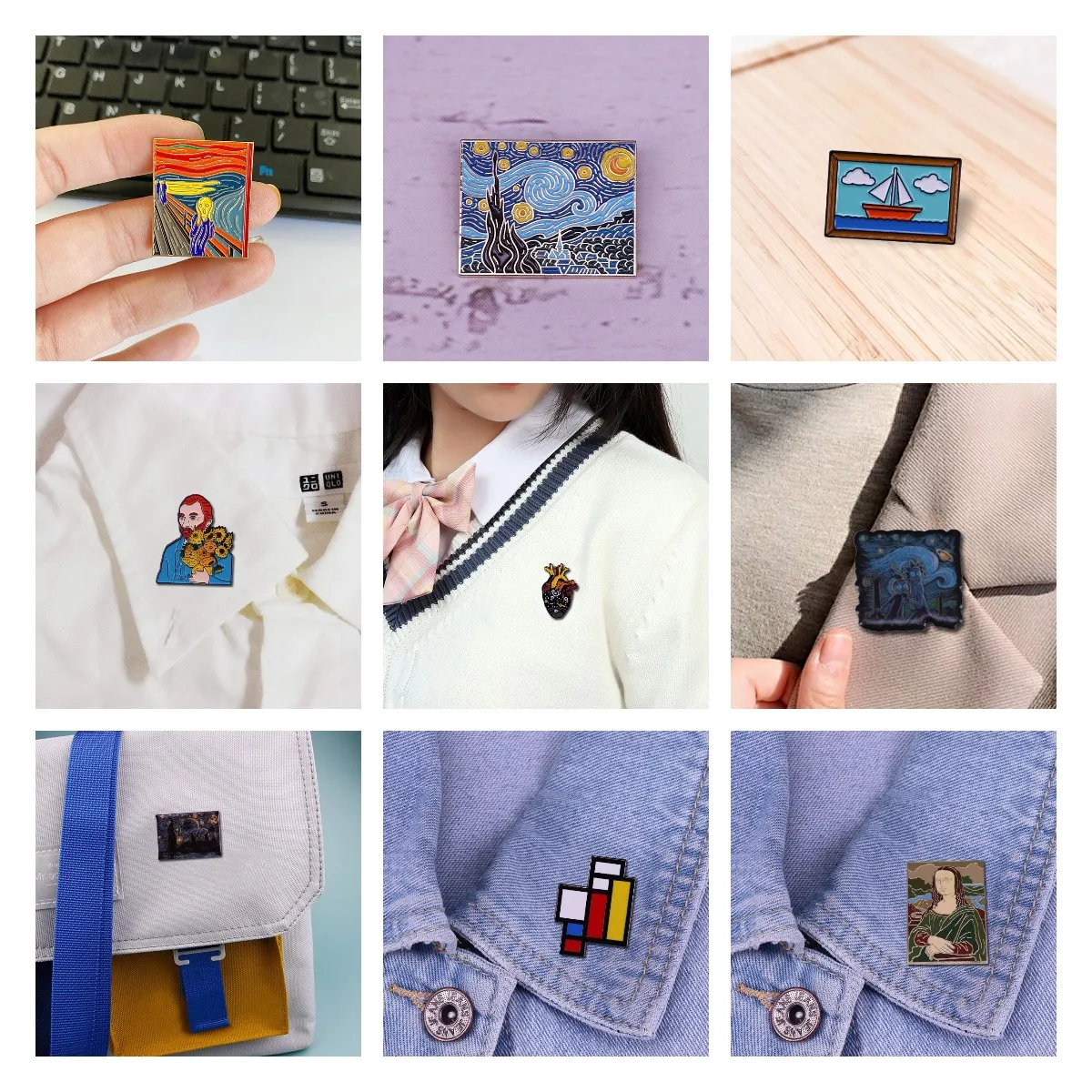 Отличное качество, эмалированная брошь с рисунком Ван Гога, живопись маслом, булавка для одежды, рюкзака, воротника, шляпы, значок на лацкан, подарки