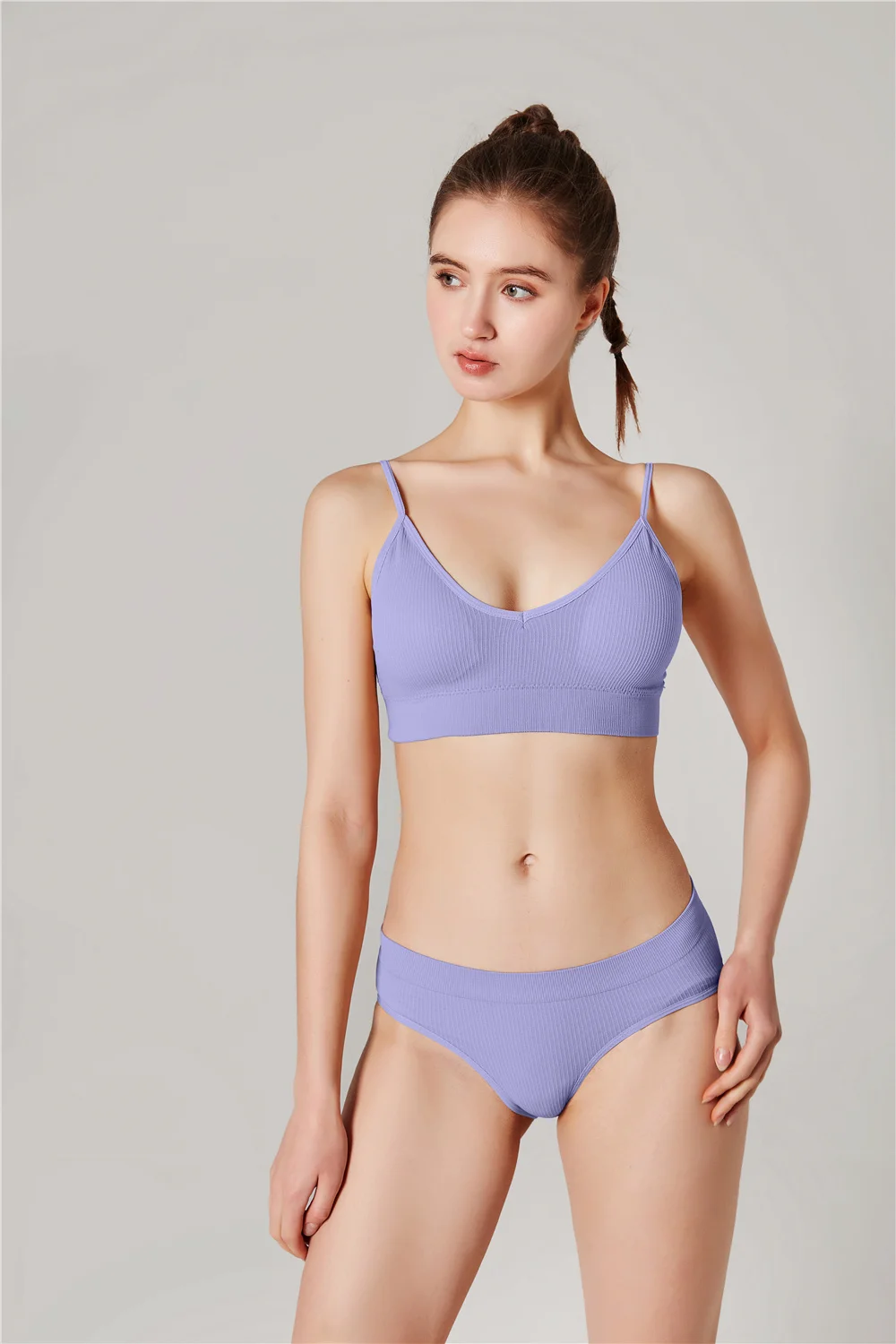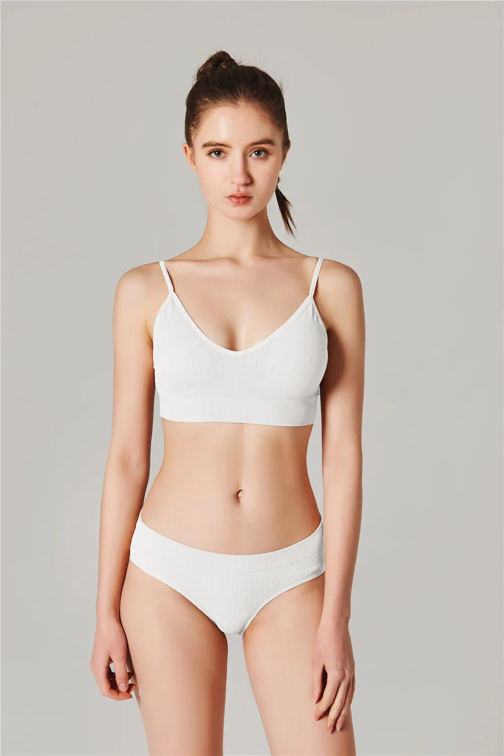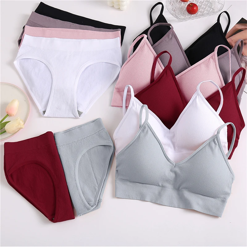 Модный бесшовный комплект с бюстгальтером, женские трусики + беспроводные бюстгальтеры, комплект нижнего белья, базовые укороченные топы, майка, трусы, интимное белье, костюм