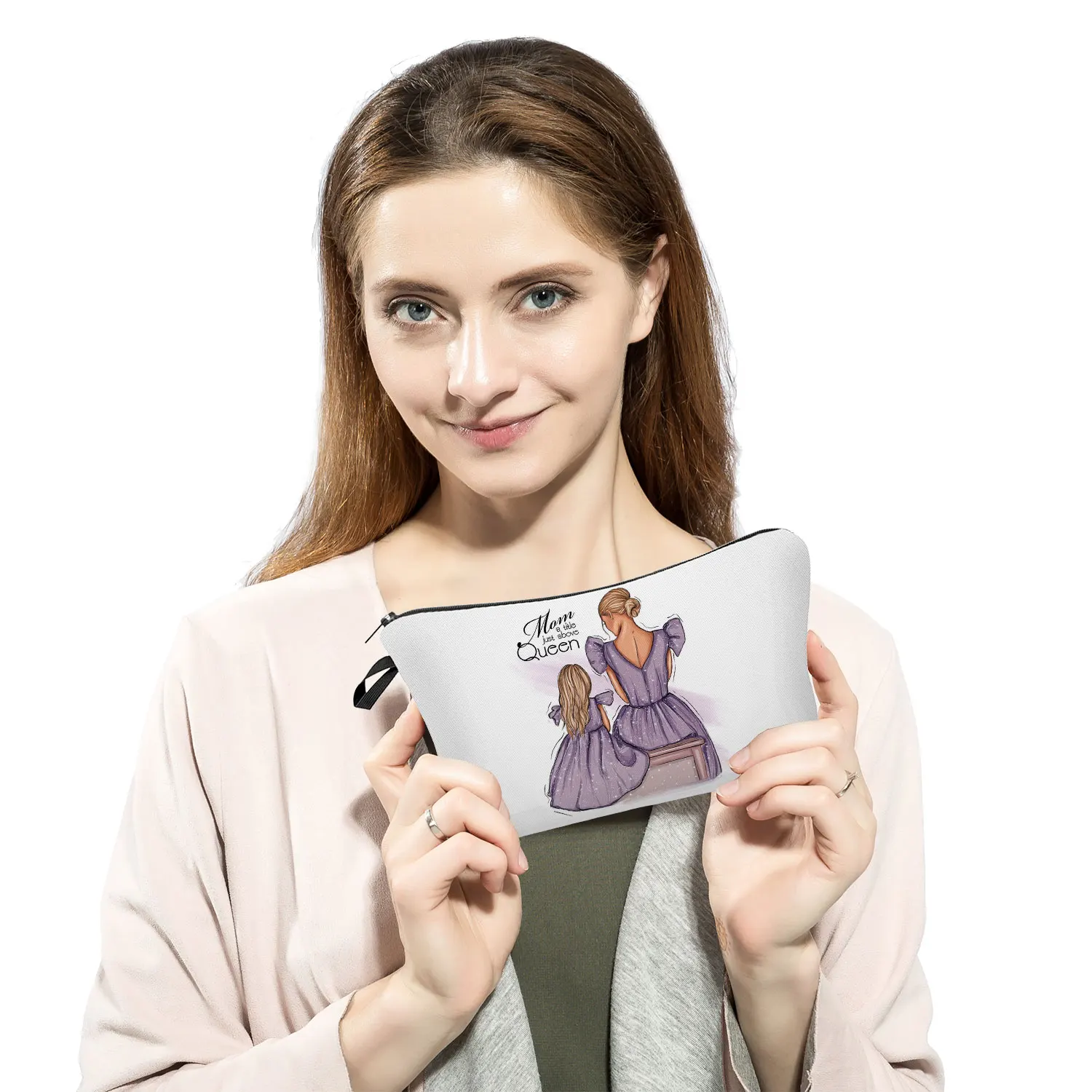 Повседневная милая сумка для макияжа с принтом «супер мама», складывающиеся женские косметички для мамы и ребенка, сумка-Органайзер для косметики с теплопередачей