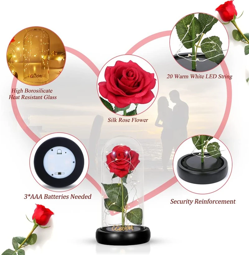 ◆ Деревянное основание и пластиковое основание являются дополнительными.◆ Выбор цветочного материала: с толстыми лепестками, это передовая технология производства сказочных цветов.◆ Высокая крышка из боросиликатного стекла: высокая термостойкость, высокая воздухопроницаемость и лучший визуальный опыт.◆ Выбор разных цветов: разные маленькие принцы интерпретируют различную любовь.