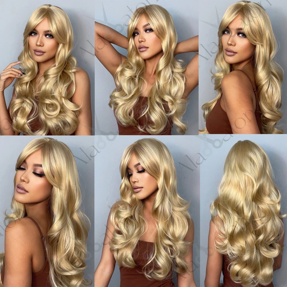 ALAN EATON, длинные золотые парики, волнистые синтетические парики с челкой для белых/черных женщин, натуральные, вечерние, повседневные, термостойкие