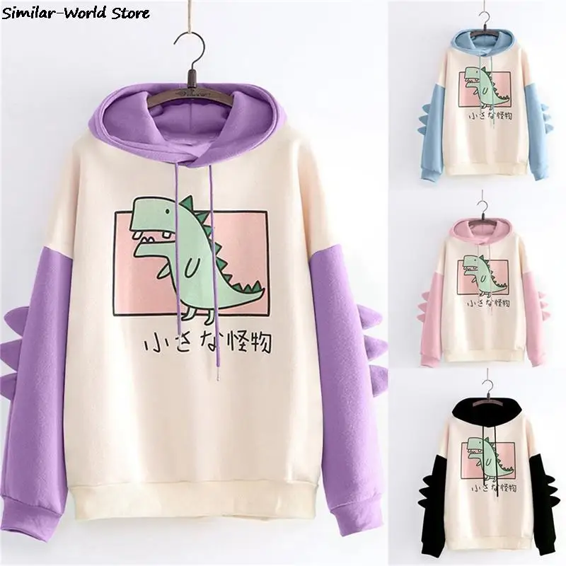 Женская толстовка с капюшоном и принтом динозавра, в Корейском стиле
