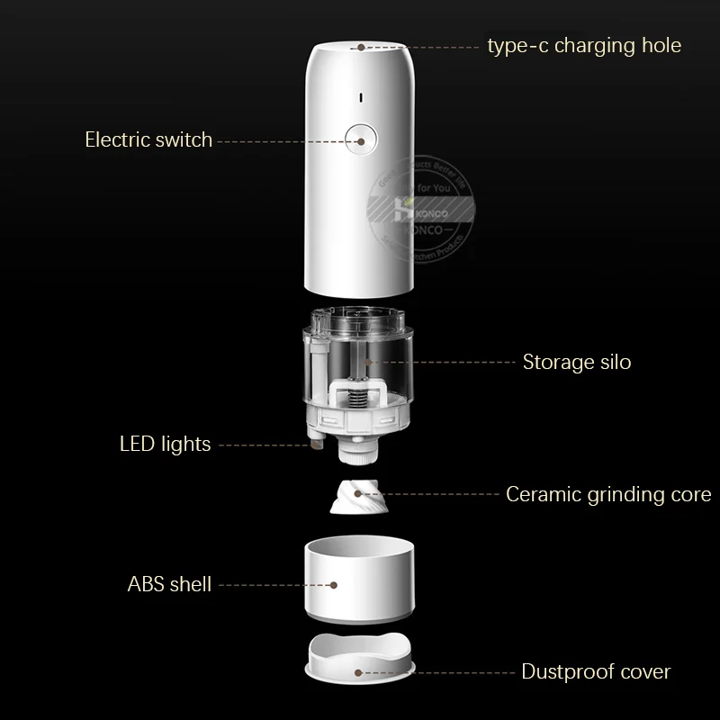 Электрическая мельница для перца, регулируемый кухонный измельчитель со светодиодсветильник кой и функцией быстрой зарядки