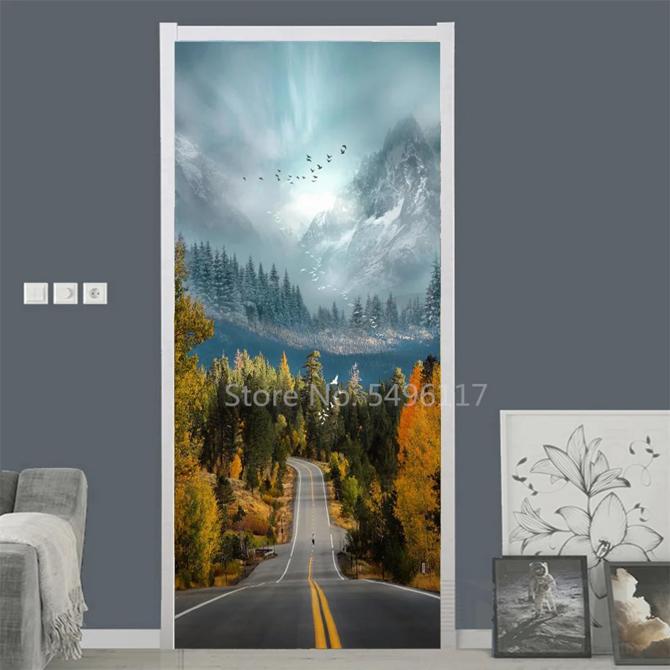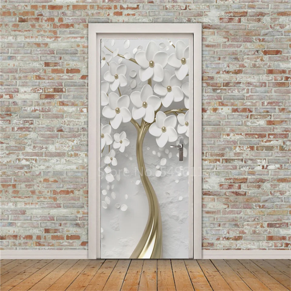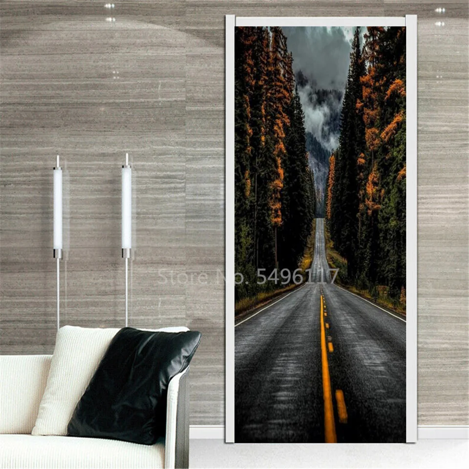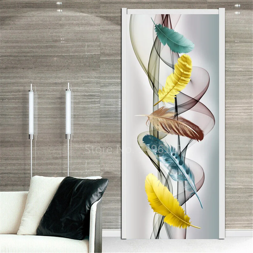 3D современные наклейки на дверь 66 дорожные декорации обои самоклеющиеся цветы перо плакат украшения спальни двери покрытие домашний декор