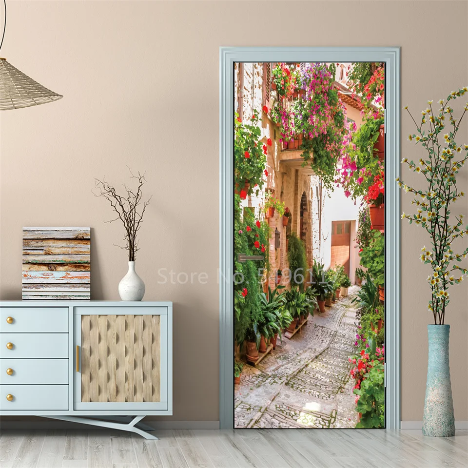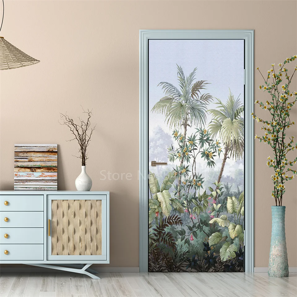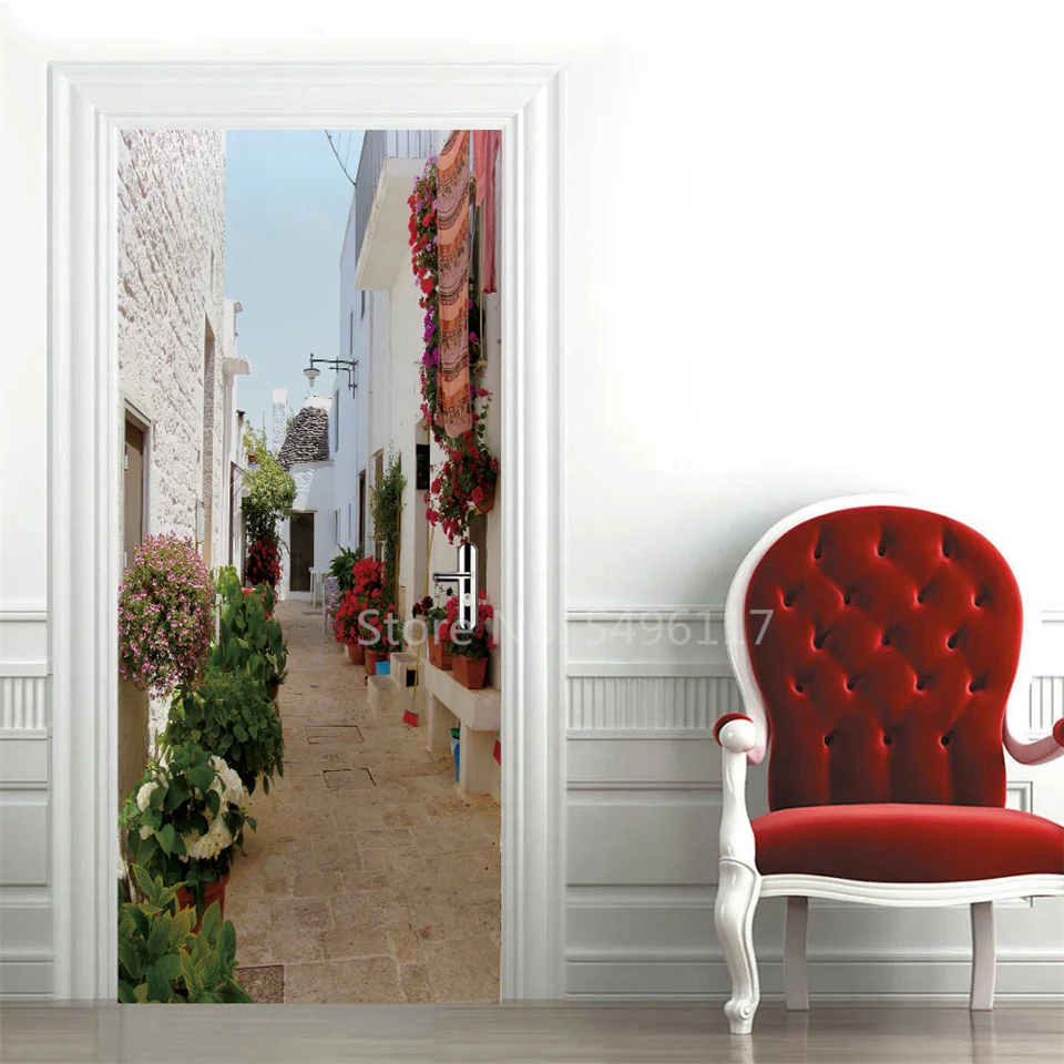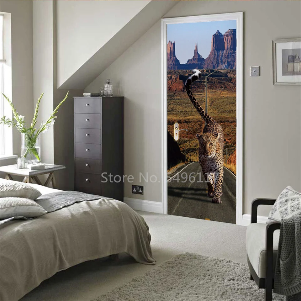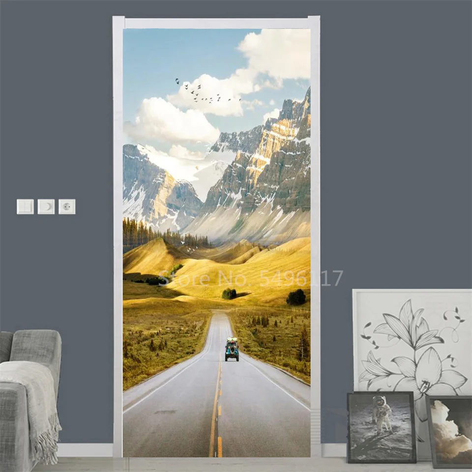 3D современные наклейки на дверь 66 дорожные декорации обои самоклеющиеся цветы перо плакат украшения спальни двери покрытие домашний декор