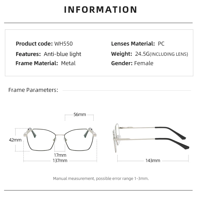 Женские очки с защитой от сисветильник, металлические оправы для очков инопланетянина, компьютерные очки по рецепту для близорукости, дальнозоркости, 1,56