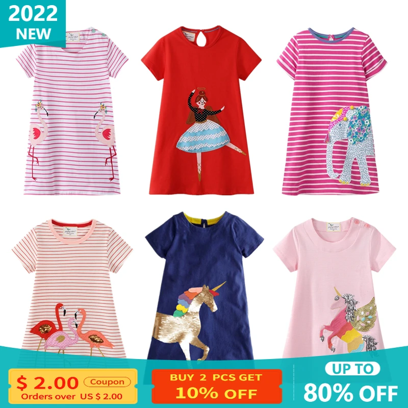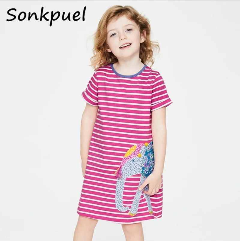Платье для девочек 2022, летние детские платья с коротким рукавом, повседневная одежда для девочек с принтом в полоску, детское платье принцессы с милым принтом единорога