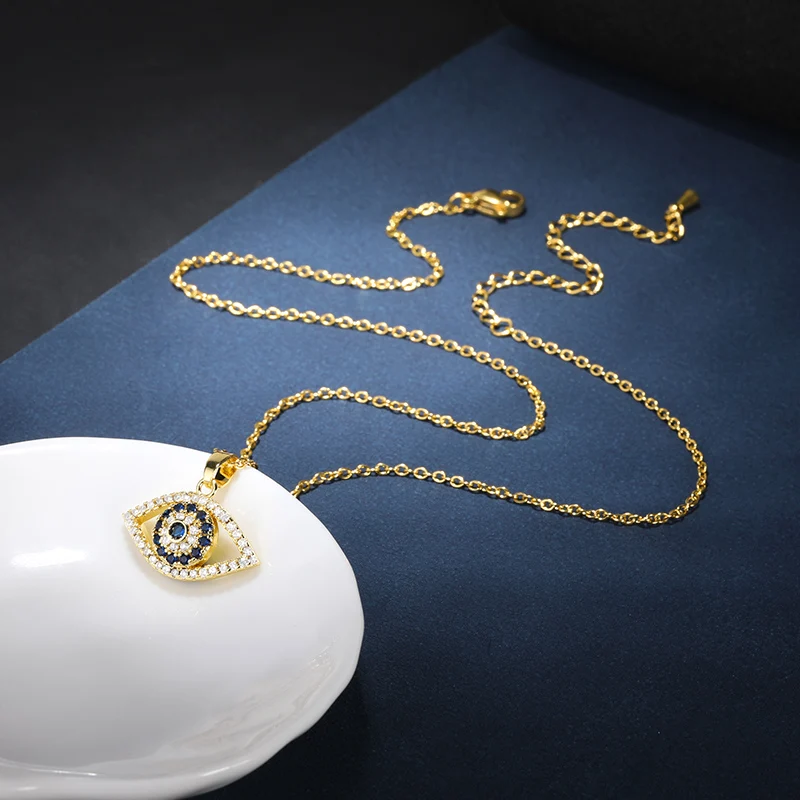 Ожерелье с кубическим цирконием и злом для женщин из нержавеющей стали золотого цвета, ожерелье с кристаллами турецкого глаза, рождественский подарок, 2022