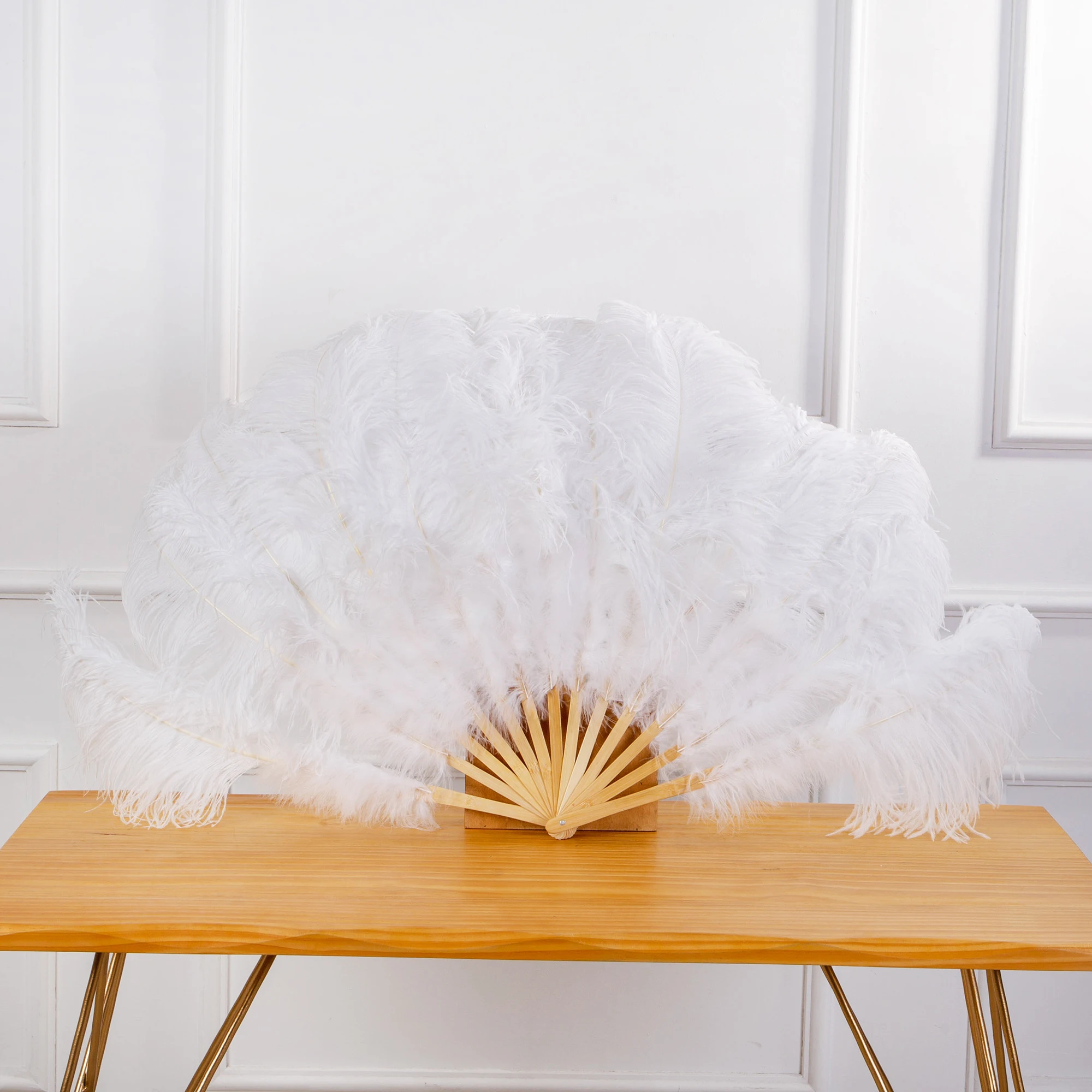 NameReal Ostrich Feather Fan Bamboo Decorative