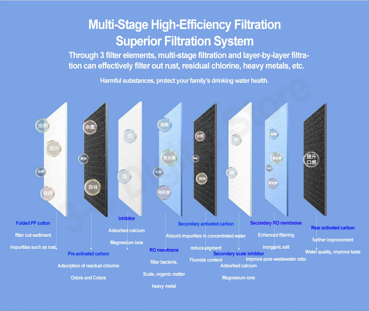Основные параметры водоочистителя Xiaomi H series 800G фильтр обратного осмоса RO2