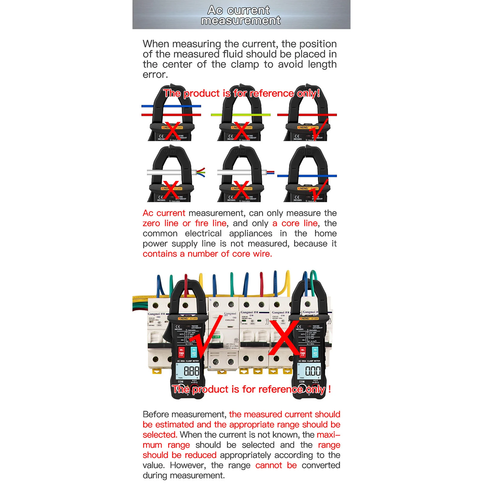 Особенности: Многофункциональный Клещи: Он имеет функции тестирования напряжения, тока, сопротивления, емкости, частоты, диода, линии ВКЛ-ВЫКЛ, идентификации напряжения в режиме реального времени, Уровень безопасности: Соответствует стандарту перенапряжения CAT II 600V, уровень II загрязнения, двойная защита изоляции и защита от перегрузки по всему диапазону. Интеллектуальное Измерение тока переменного/постоянного тока: автоматические и ручные режимы для измерения электрического тока. Функция удержания данных: удобно для наблюдения или записи данных. Бесконтактное Обнаружение напряжения NCV: Получите датчик рядом с кабелем, который будет обнаружен, затем звуковой сигнал будет оповещаться, и светильник NCV будет мигать, когда он обнаруживает напряжение переменного тока. Автоматическое выключение: если в течение 15 минут нет работы, прибор автоматически отключится для экономии энергии батареи. Дополнительные характеристики: 6000 подсчитывает ЖК-дисплей, фонарик, индикацию низкого заряда батареи и т. д. Компактный и портативный: удобный для использования одной рукой при измерении, более быстрый и легкий в использовании. Широкий спектр применения: Идеально подходит для домашнего и профессионального использования, автомобильных, домашних и промышленных электрических устранения неполадок. Характеристики: Диапазон переменного тока: 60A/400A Диапазон тока постоянного тока: 60A/400A Диапазон напряжения постоянного тока: 600 В/600 мВ Диапазон напряжения переменного тока: 600 В/600 мВ Сопротивление: 600Ω/6k Ω/60k Ω/600k Ω/6M Ω/60MΩ Емкость: 60nF/600nF/6 мкФ/60 мкФ/600 мкФ/6mF/60mF Температура: -40 ~ 1000 ℃, -40 ~ 1832 ℃ Частота: 60 Гц/1000 Гц Цвет: черный/красный (на выбор) Материал: АБС-пластик Дисплей: ЖК-дисплей Макс. Значение дисплея: 6000 цифр Время выборки: около 3 раз/секунду, барграф 10 раз/секунду Автоматическое выключение: 15 минут Рабочая температура: 18 ~ 28 ℃ Температура хранения: -10 ~ 50 ℃ Рабочая высота: макс. 2000 м Питание: 2*1,5 V элемент питания AAА (в комплект не входит) Размер изделия: 182*62,1*33,4 мм/7,17*2,44*1,31 дюймов Вес изделия: 150 г/5,29 унций Вес посылка: 272 г/9,59 унций Посылка Размеры: 21,7*8,5*4,5 см/8,54*3,35 * 1.77in Упаковочный лист: 1 * измеритель зажима 1 * Тестовый свинец 1 * термопара типа K 1 * Руководство (на английском языке)