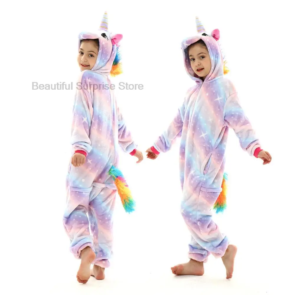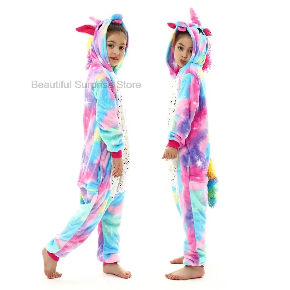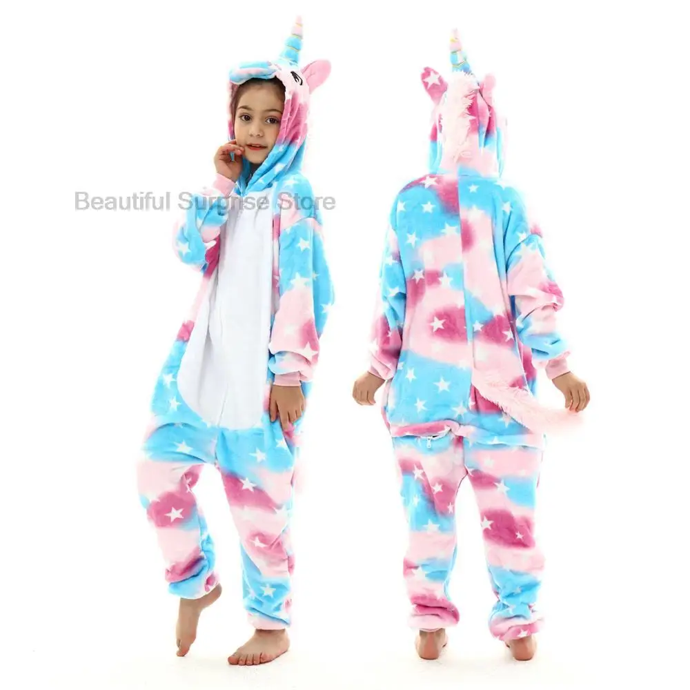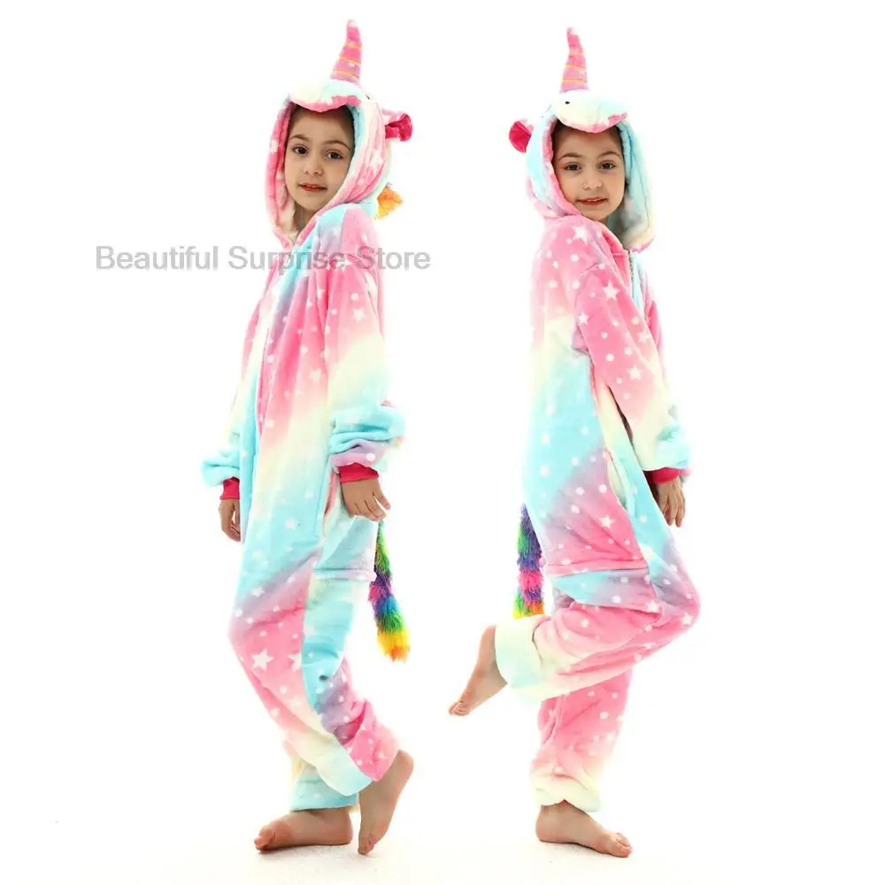 Детский комбинезон-кигуруми Ститч, единорог, мультяшный костюм для мальчиков и девочек, необычный Детский комбинезон для косплея с животными, Забавный зимний комбинезон для малышей