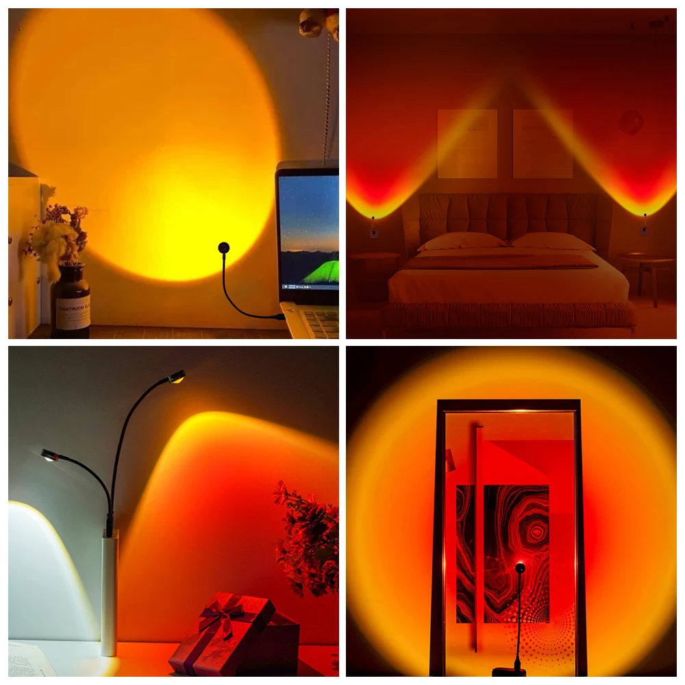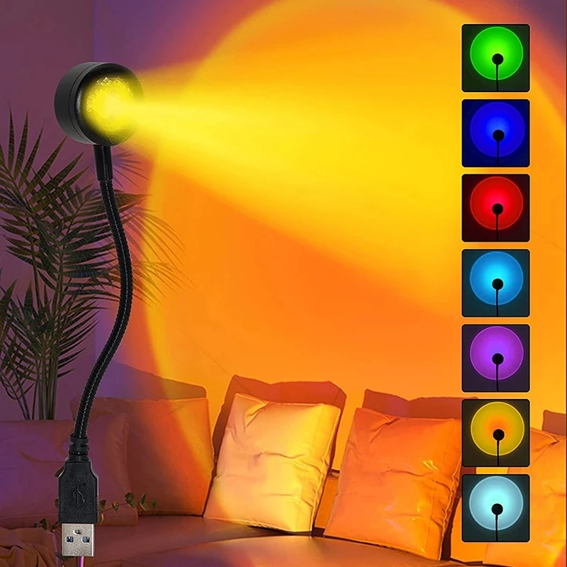 Светодиодная лампа с закатом, ночник с USB, радусветильник светильник для спальни, украшение для фотосъемки, светильник для домашнего декора