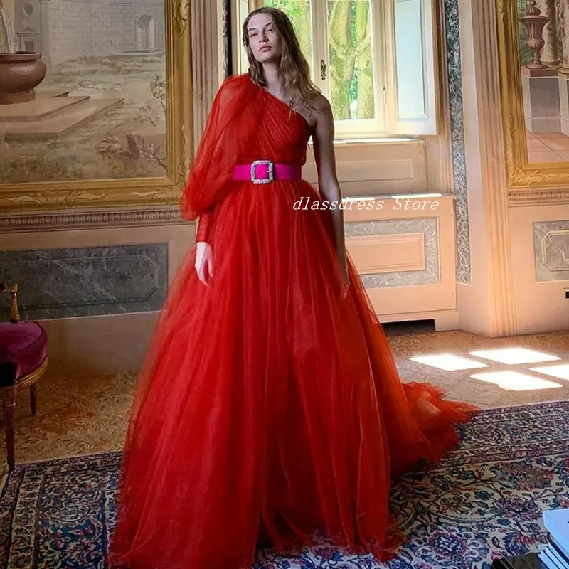 Великолепные красные платья для выпускного вечера на одно плечо с длинным рукавом, вечерние наряды А-силуэта, женские модные платья без пояса, праздничные платья 2022