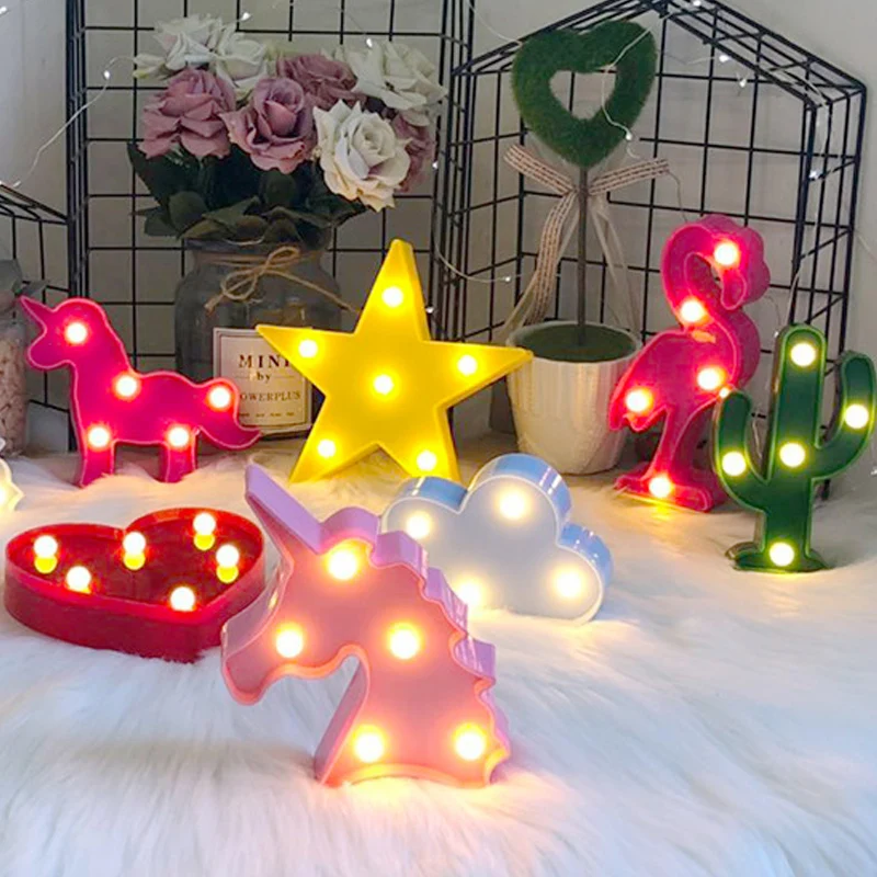Ночсветильник светодиодный с единорогом, фламинго, луной, облаком