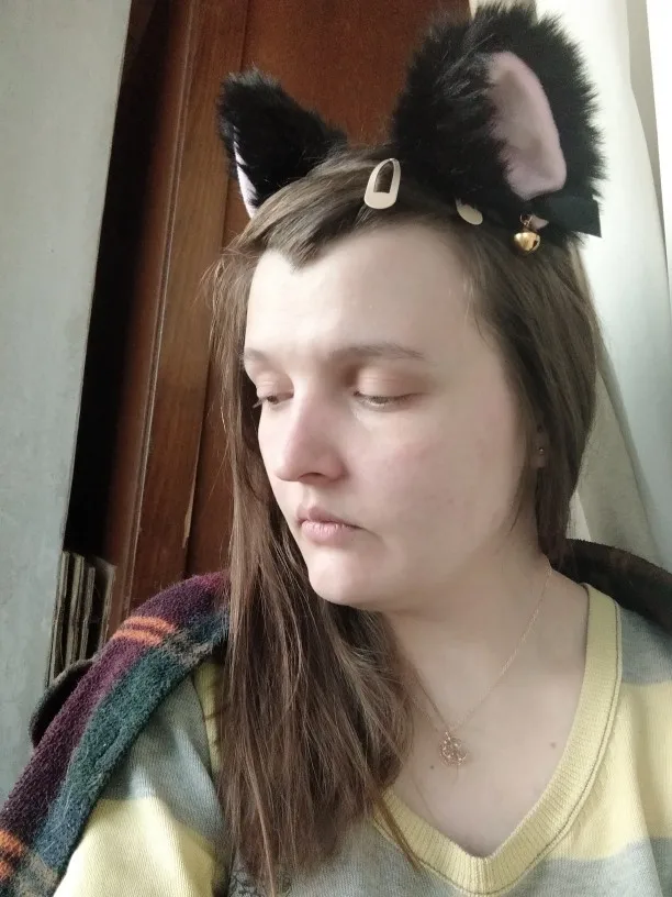 Прекрасный обруч. Очень красивый и большой. Вполне подойдёт и для взрослого. Голову не пережимает. На ушках два бубенчика, которые громко звенят при каждом движении. Искусственный мех мягкий, приятный на ощупь. Продавец хорошо упаковал и быстро отправил товар.