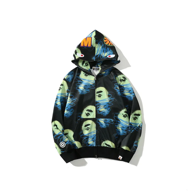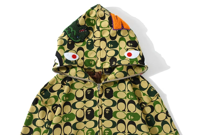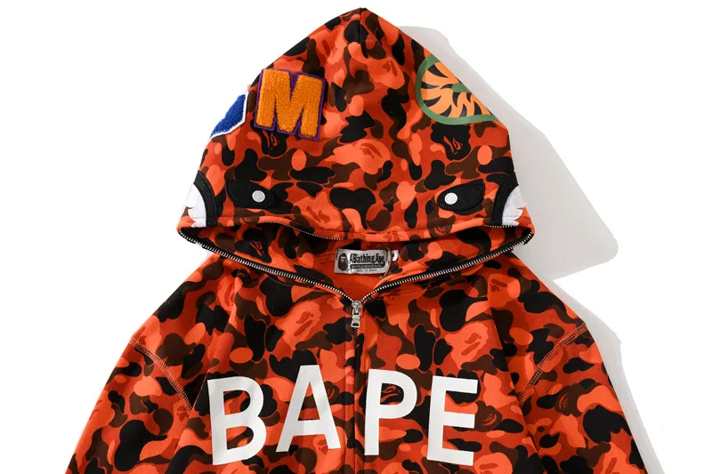 Зимние мужские повседневные толстовки с капюшоном Bape Shark, камуф...