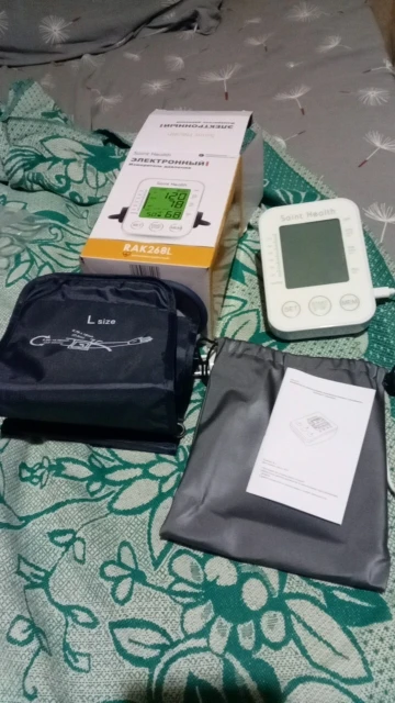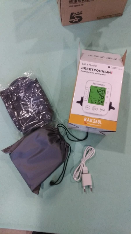 Прекрасный тонометр. Заказываю уже второй раз. На этот раз сразу две штуки, по просьбе знакомых. Тонометр с русским голосом и с большим чётким дисплеем со цветовой индикацией. В комплекте: сам тонометр, сумочка, манжета, блок питания с кабелем и инструкция. Работает также от батареек или аккумуляторов. Доставка быстрая. Рекомендую!