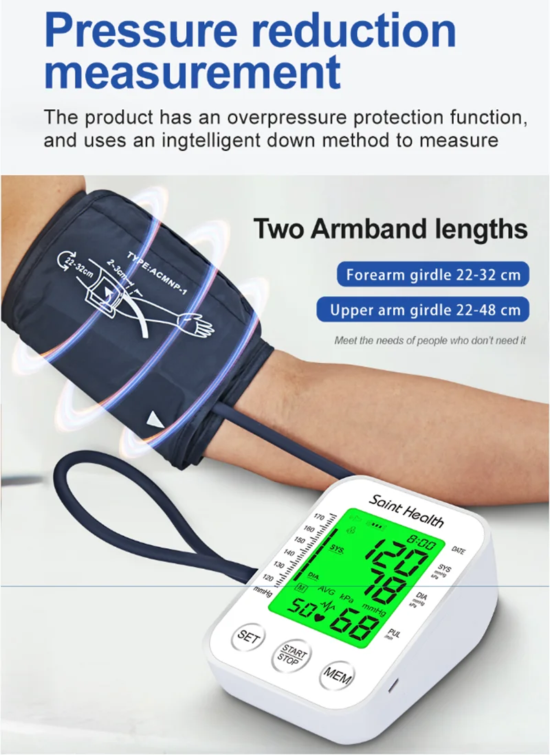Saint Health русский голос тонометр на предплечье 3 цвета с подсветкой танометр давления цифровой манометр тонометры медицинские medical devices танометр автоматический lcd tonometer