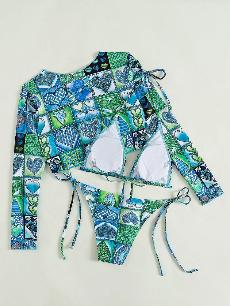 Бикини с принтом In-X, купальник с длинным рукавом, женские купальные костюмы из 3 предметов, купальник, комплект бикини, женские костюмы для купания, mujer 2022