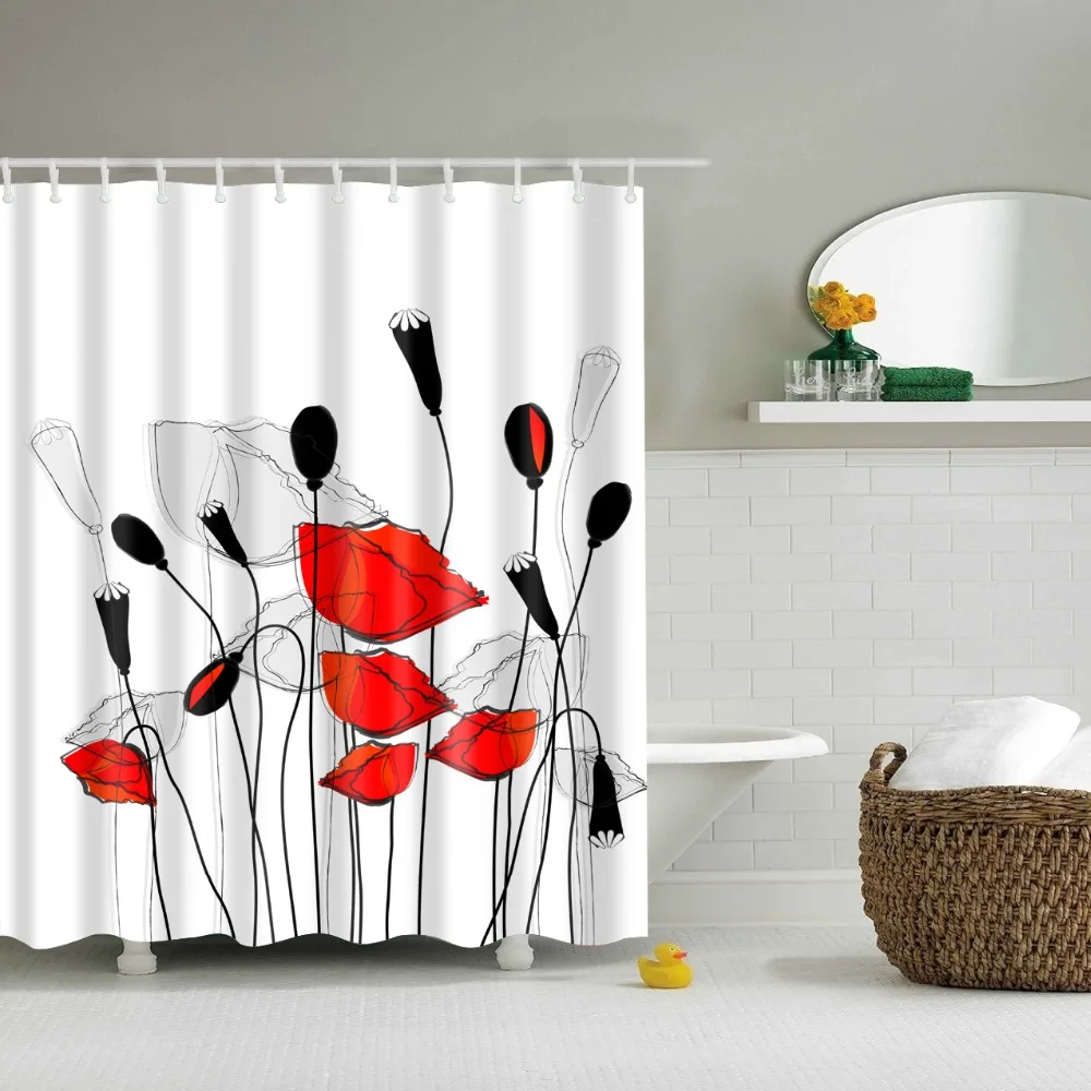 Красная роза растений в помещении цветы занавеска для душа 3d Ванна...