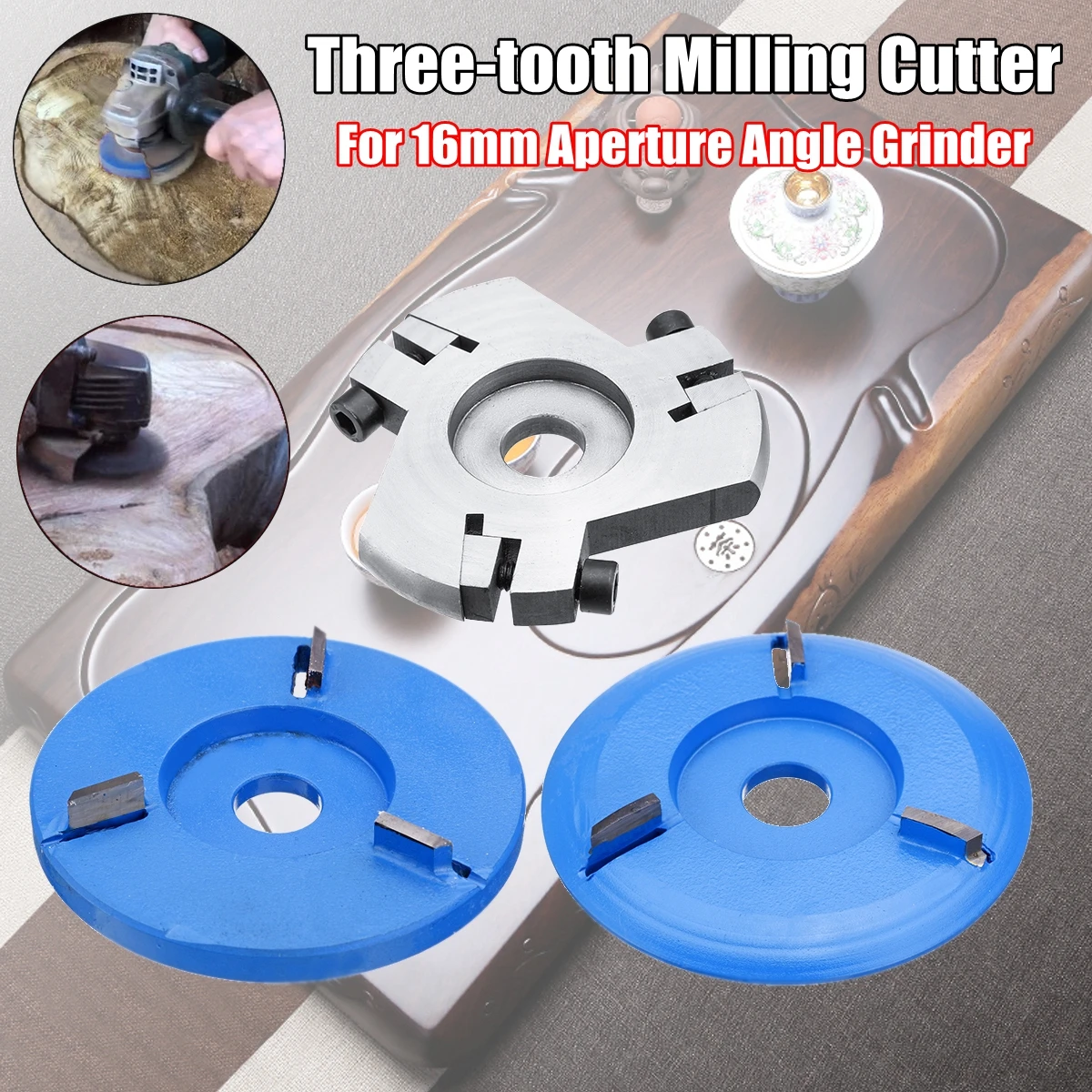 Деревообрабатывающий турбо-диск с тремя зубьями, деревообрабатывающий Фрезерный резак, резьбовое лезвие для диска 100 мм, 115 мм, диск 4 дюйма, 16 мм Диафрагма, угловая шлифовальная машина