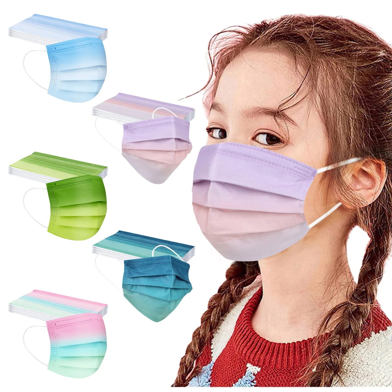 10 шт., Детские трехслойные маски для лица с рисунком радуги