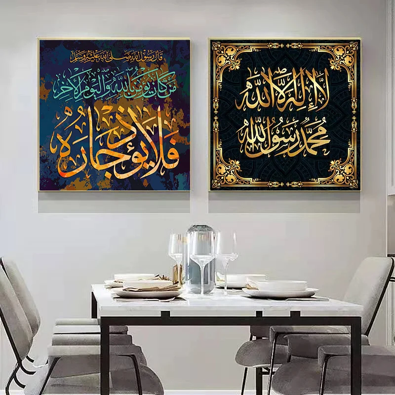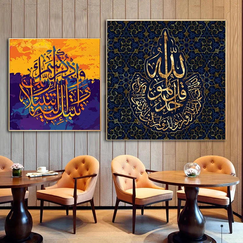 Исламский холст картины плакаты и принты каллиграфия из Корана Бог Мохаммед религия настенные художественные фотографии для Рамадана мечеть Декор