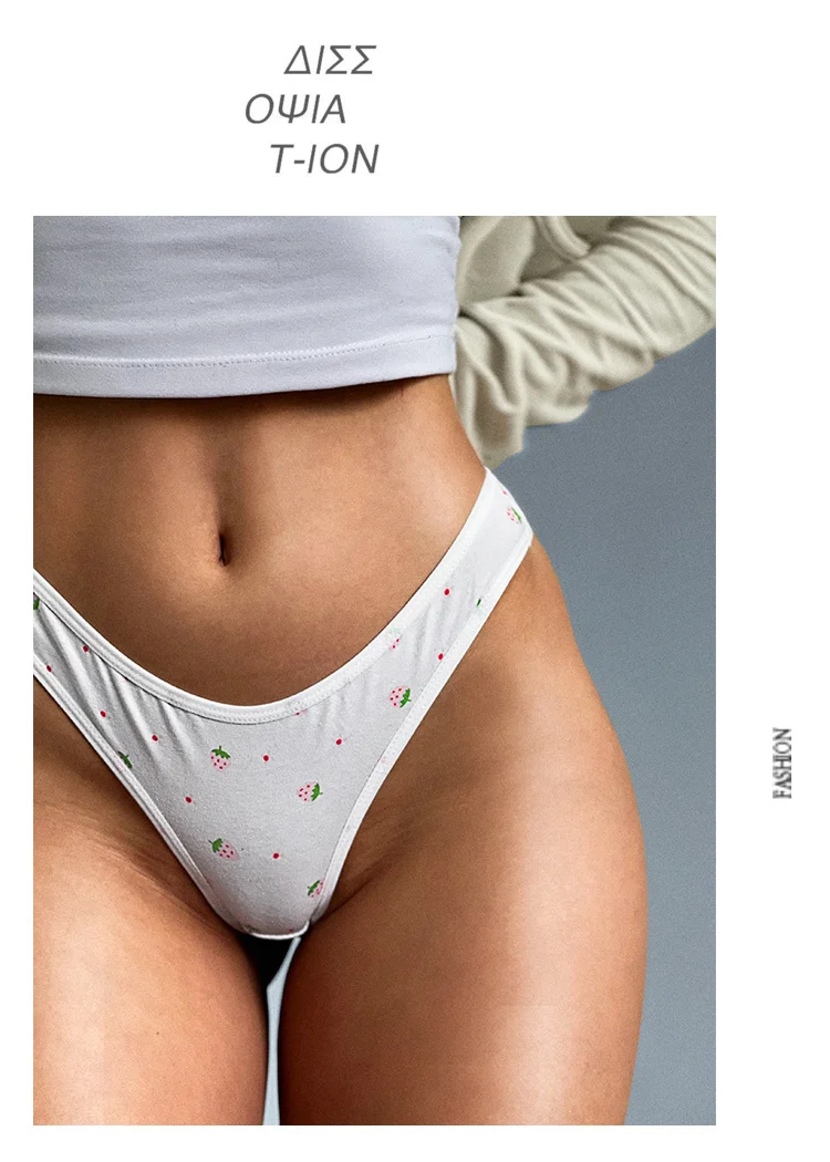 SP CITY, тонкие хлопковые стринги с клубничкой, сексуальное женское нижнее белье с низкой талией, комфортные бесшовные трусы-бикини без следов Танга