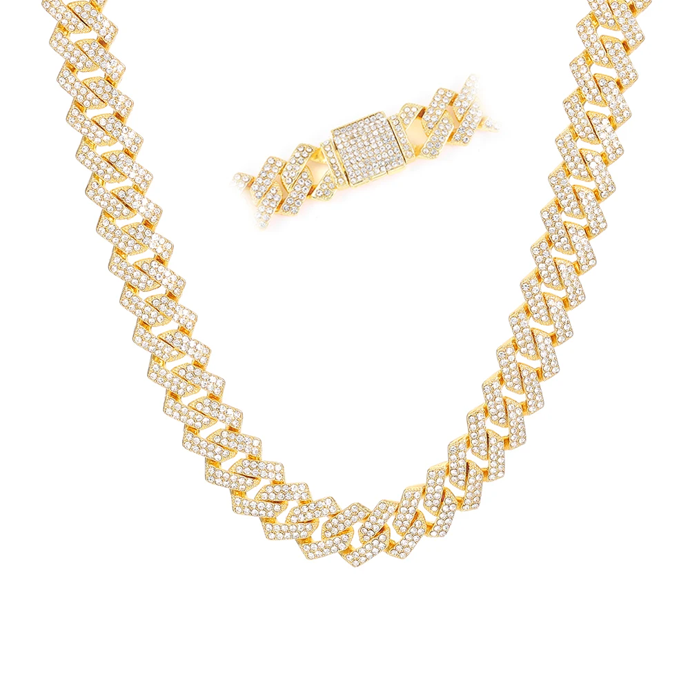 Мужское ожерелье из кубинской цепи в стиле хип-хоп с блестящими кристаллами, Женский блестящий роскошный браслет стразы, ювелирные изделия в стиле рэпера