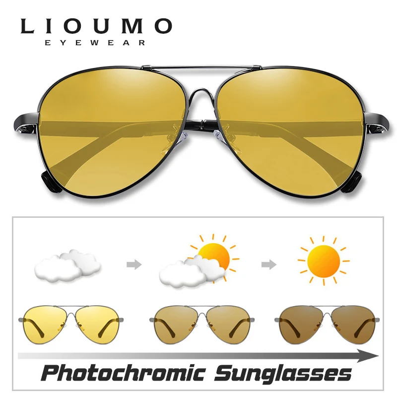 Солнцезащитные очки-авиаторы LIOUMO с фотохромными линзами для мужч...