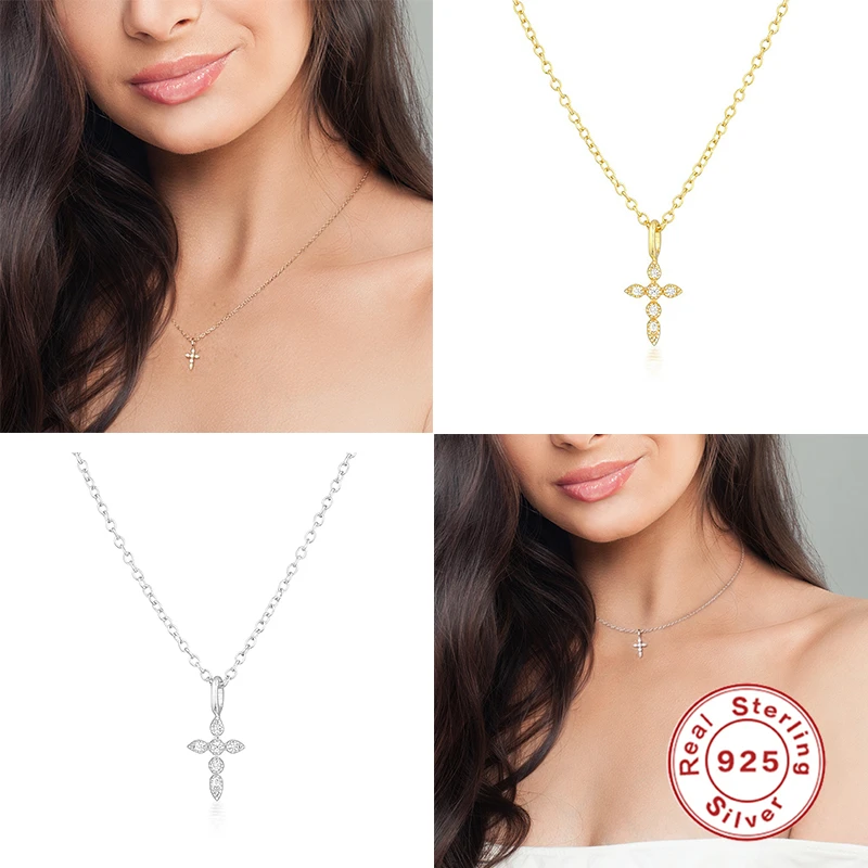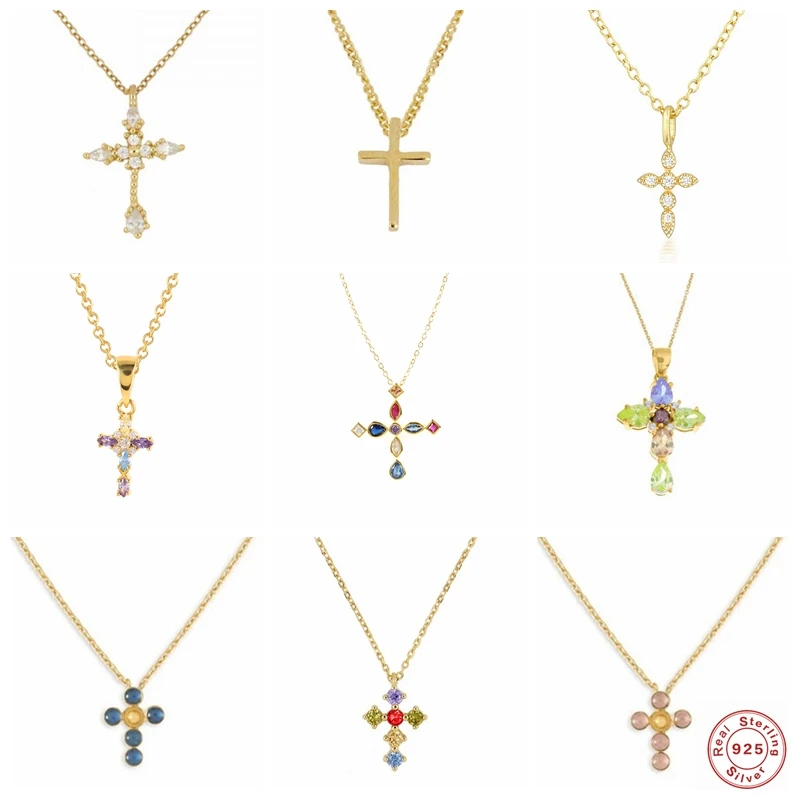 Женское ожерелье с цепочкой Collares Mujer, ожерелье из стерлингового серебра 925 пробы с цветным цирконием и крестиком, ожерелье с подвеской на День святого Валентина