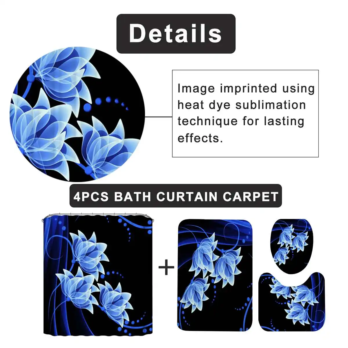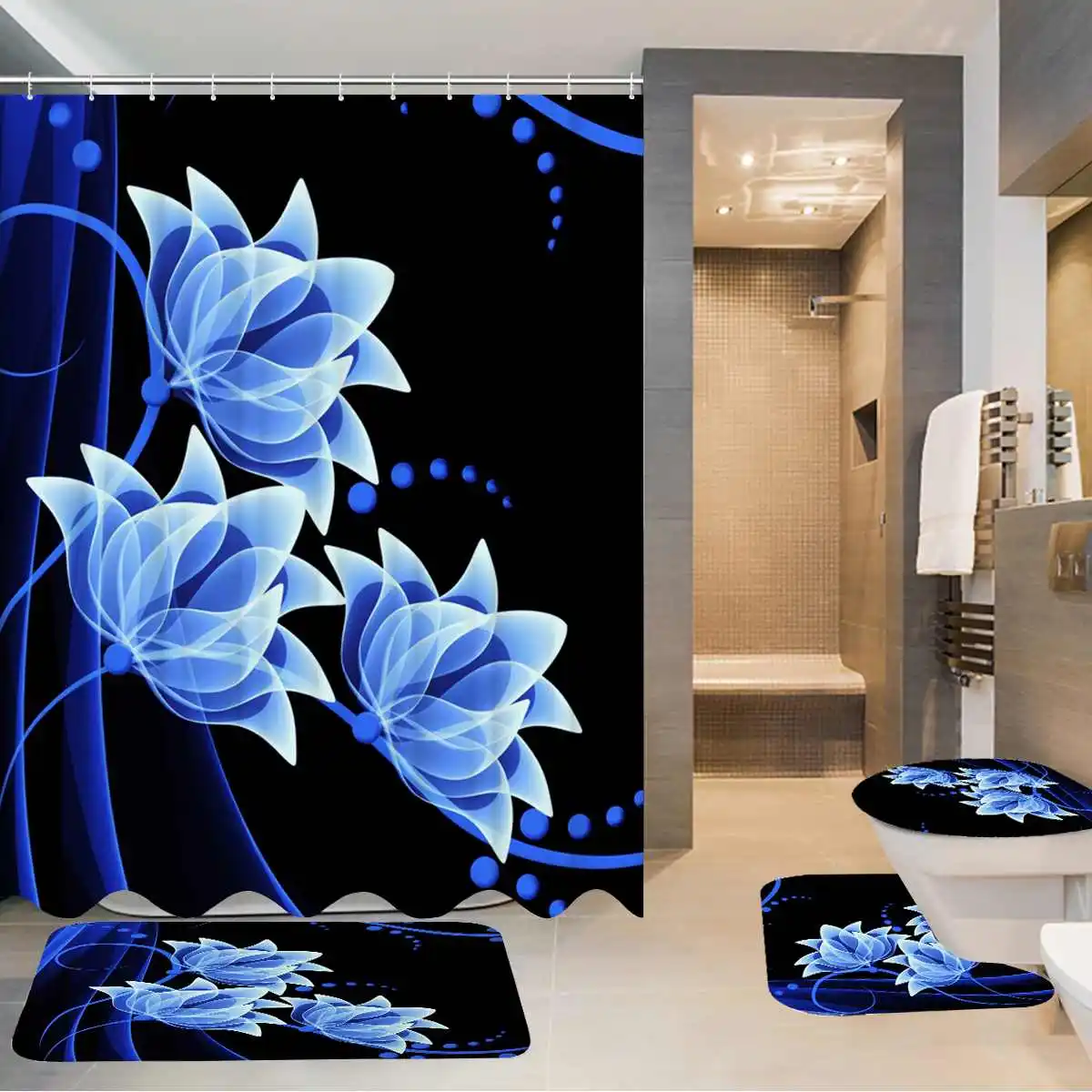 Шторка для душа с синим цветочным принтом, 180x180 см