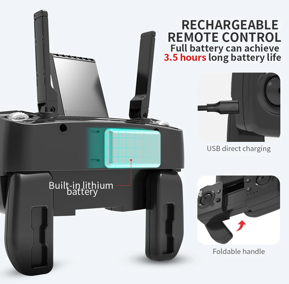 Использование приложения соединение может принести стабильную передачу изображения высокой четкости, стоя на месте может видеть отдаленные пейзажи. И пульт дистанционного управления принимает складной дизайн, который может храниться в сложенном виде, когда он не используется, что делает хранение более удобным.