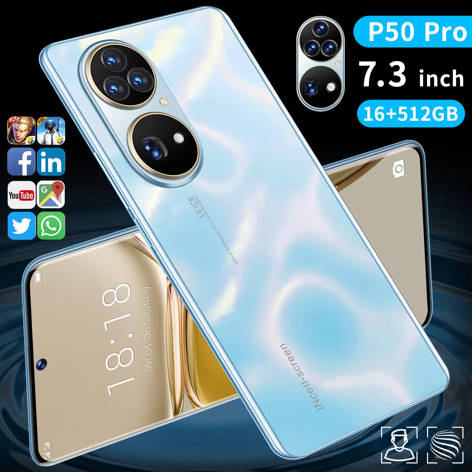2022 новый смартфон P50 Pro сотовый телефон 7,3 дюймов 10 ядер 32 Мп + 64 мп сотовый телефон 6800Amh 16 ГБ + ТБ Android 12 Сотовый телефон Qualcomm 888