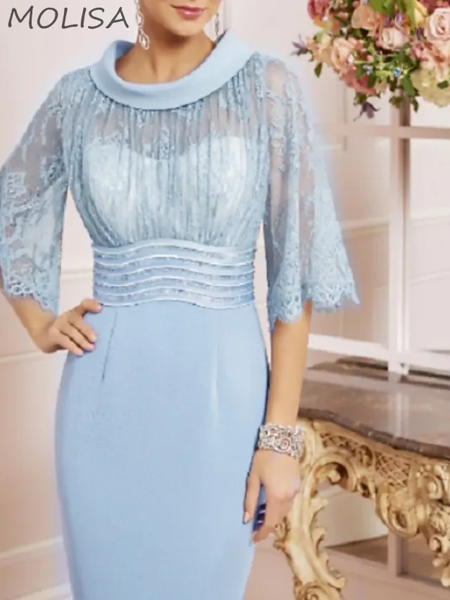 Вечернее платье до середины икры, с кружевными аппликациями, коротк...