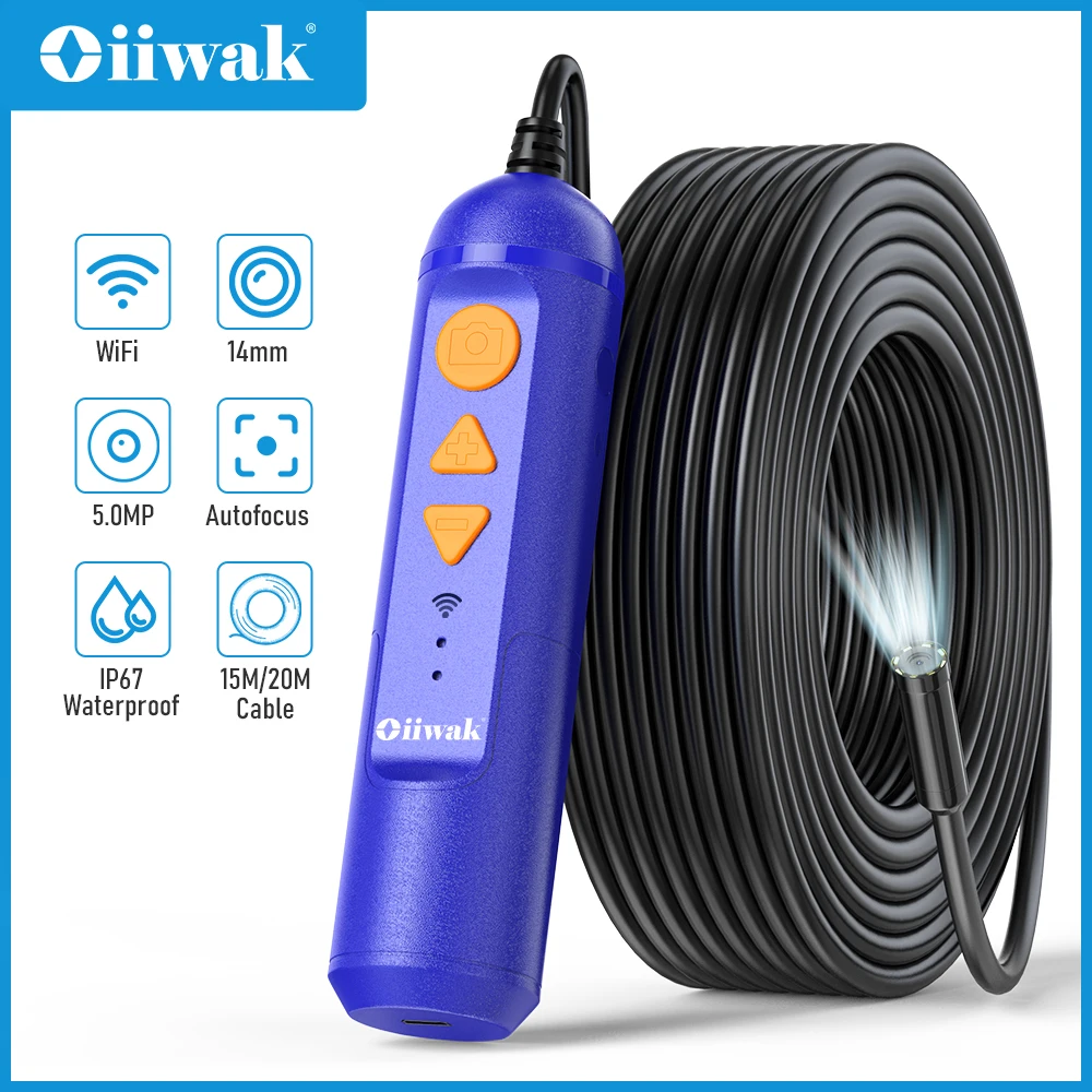 Мини-камера-эндоскоп Oiiwak, Wi-Fi, 5 МП, автофокус, объектив 1944P 14 мм