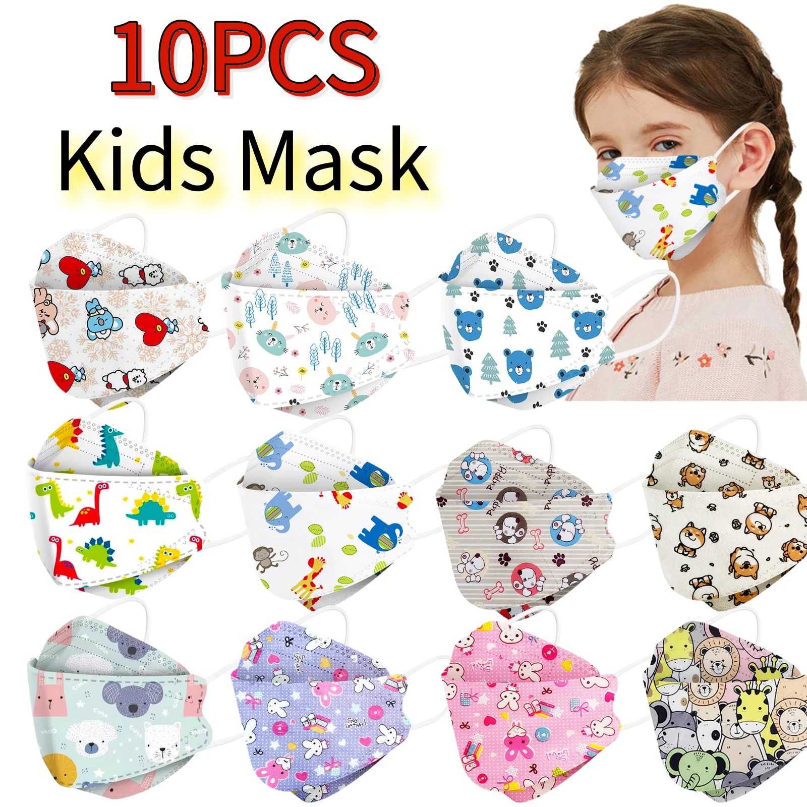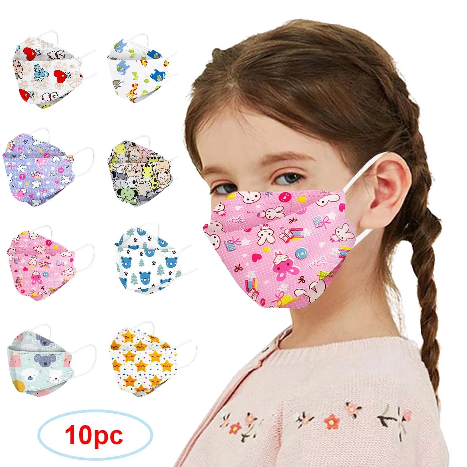 10 шт., детская дышащая маска для лица с рисунком