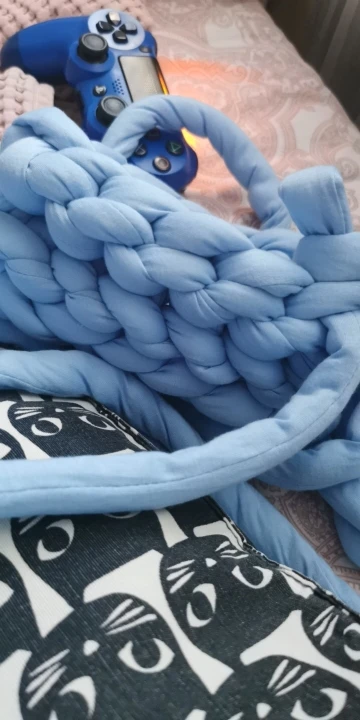 Описание Тип: шерстяная пряжа Материал: хлопок Диаметр: около 2 см Длина: около 12 м (0,25 кг) Сколько одеял вам нужно: 45x45 см: 0,5 кг (1 шт) 80x100 см: 1,6 кг (3 шт.) 100x150 см: 3 кг (6 шт.) 130x170 см: 4,5 кг (9 шт.) 150x200 см: 6 кг (12 шт.) 200x200 см: 8 кг (16 шт.)