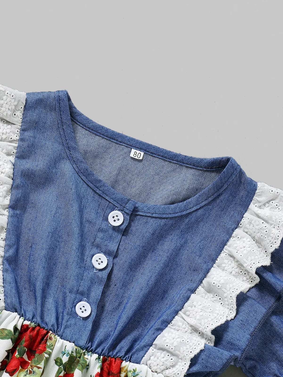 Джинсовое платье для девочек 3-24 месяцев, платье принцессы с цветочным кружевом и оборками, модная одежда для маленьких девочек