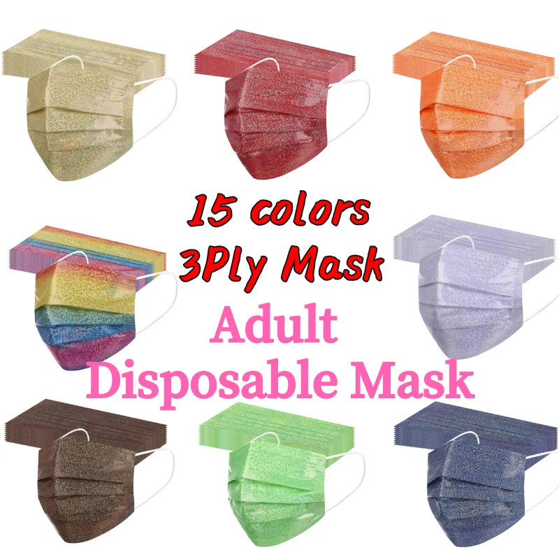 10 шт., одноразовые блестящие маски для взрослых, 3 слоя