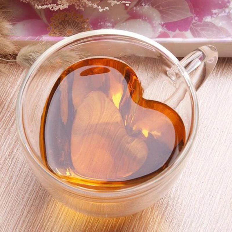 Термостойкая посуда для напитков, 180 мл240 мл, стеклянная кружка с двойными стенками, кружка для сока, чашки для кофе, кружка, подарок, в форме сердца, в форме сердца, 1 шт.