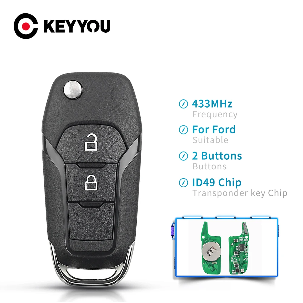 KEYYOU для Ford Ranger F150 2015-2018 ID49 чип 2 кнопки дистанционный Автомобильный ключ FSK EB3T-15K601-BA 433 МГц PCF7945P
