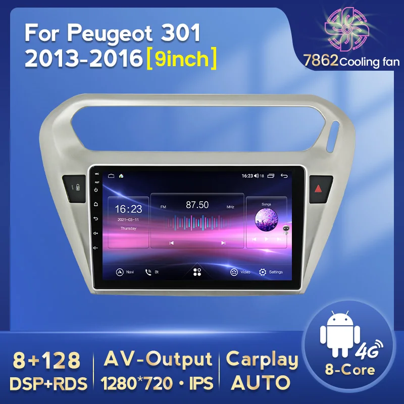 NaviFly 8G 128G 1280*720 Carplay Android автомобильный Радио плеер Мультимедиа GPS для Peugeot 301 для Citroen C-Elysee 2012 - 2016
