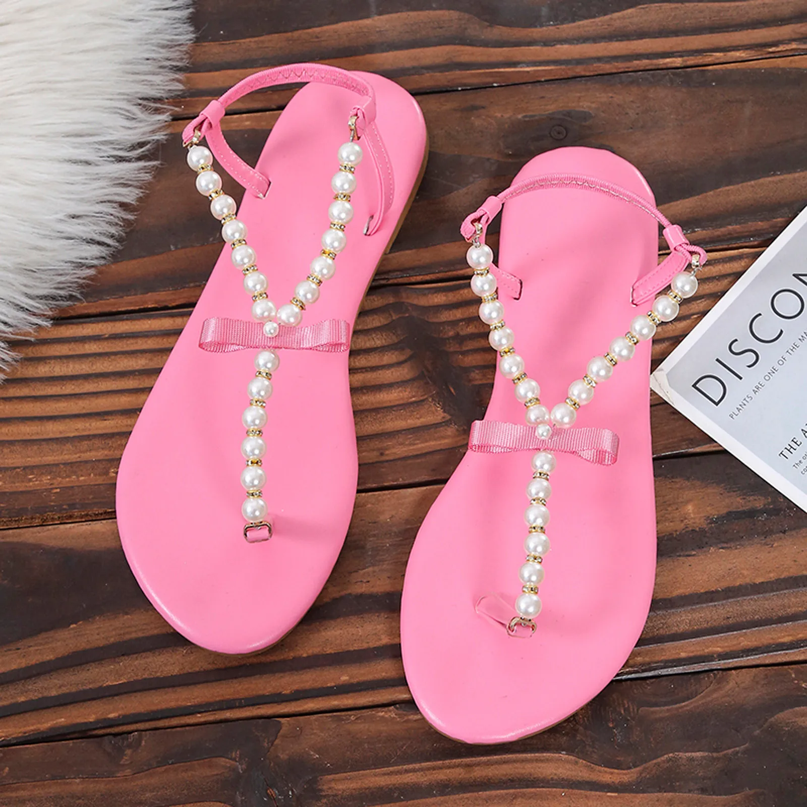 Новые летние женские сандалии; Очень большие повседневные Вьетнамки с бусинами; Женские шлепанцы с бантом