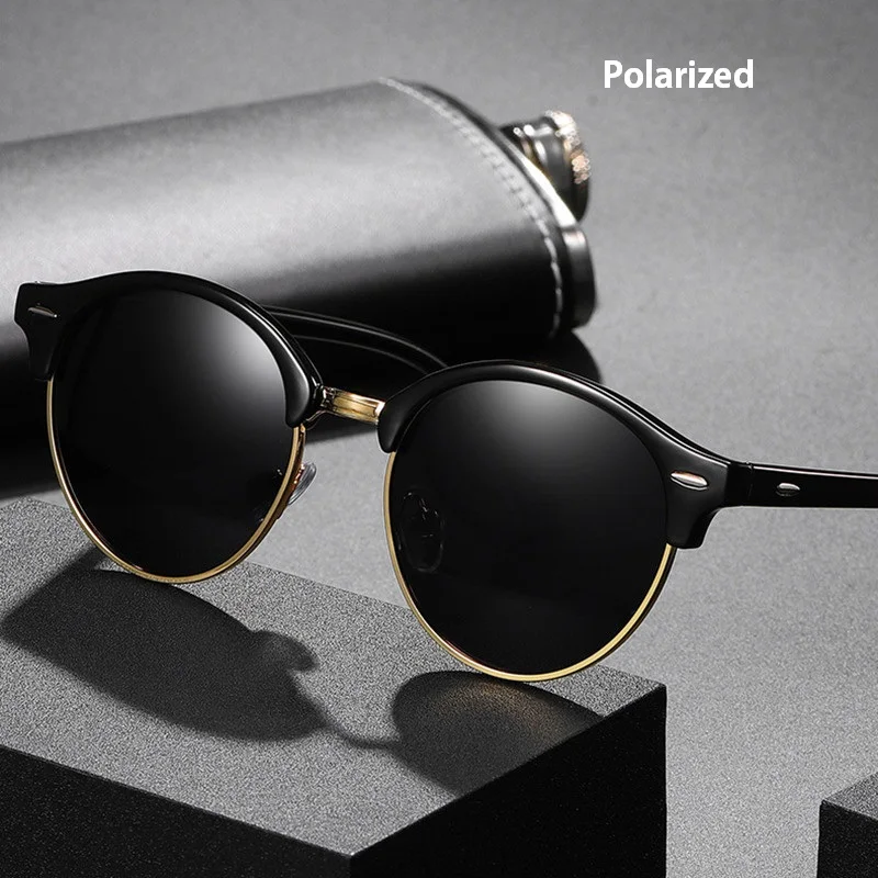 Солнцезащитные очки с полуободковой оправой для мужчин и женщин UV-400, Классические поляризационные, в стиле ретро, для вождения, с антибликовым покрытием